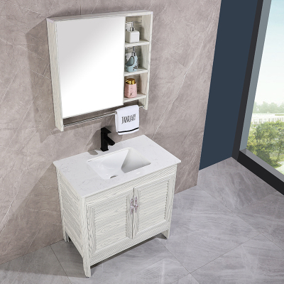 Space Aluminum Laundry Cabinet Balcony Ceramic Laundry Basin Hand-washing Table Basin Floor Combo Cabinet Marble Face Bath Cabinet