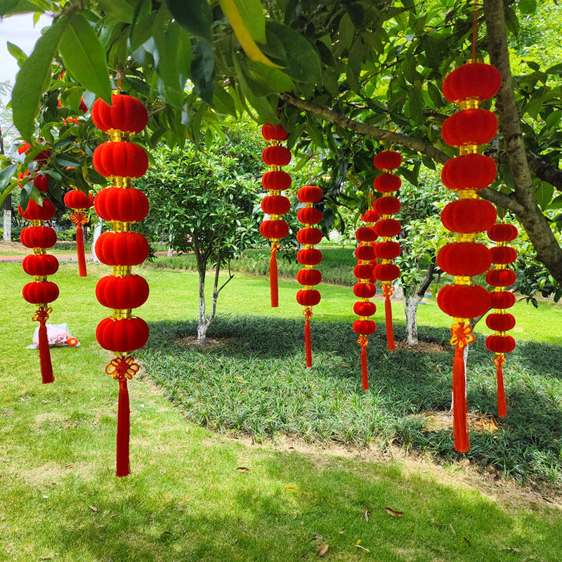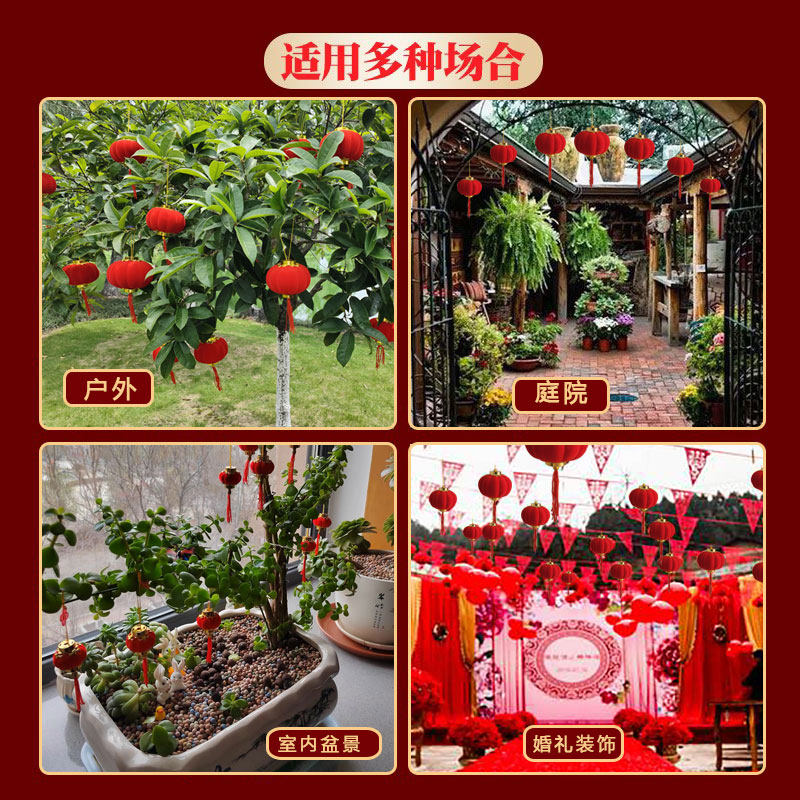 New Year's Day small lanterns hanging decorations trees New Year flocking big red lanterns wedding pendant bonsai outdoor decoration lantern string-Taobao