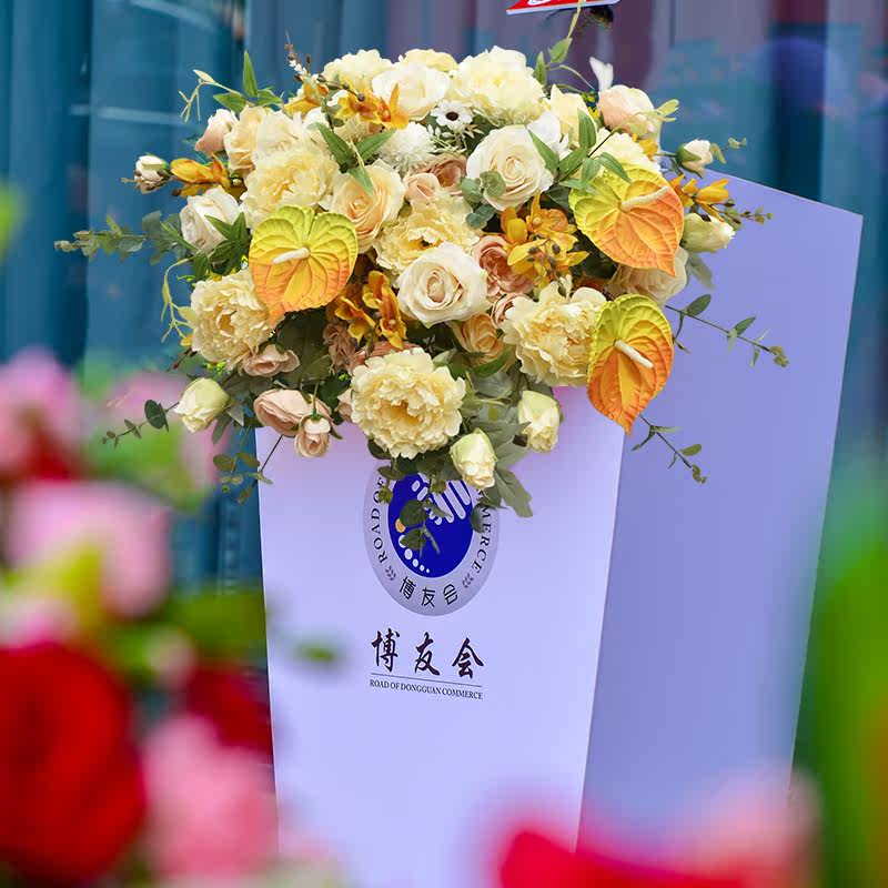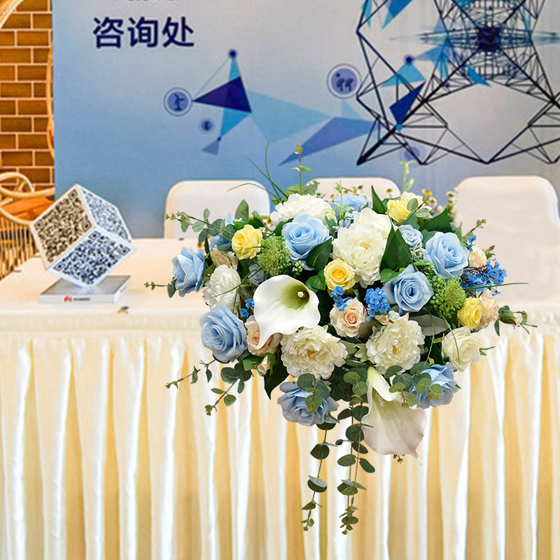 Speech Desk Flower Company Meeting Chair Desk Business Greeting Flowers Fake Flower Table Flower Wedding Hotel Sign to Silk Flower Arrangement