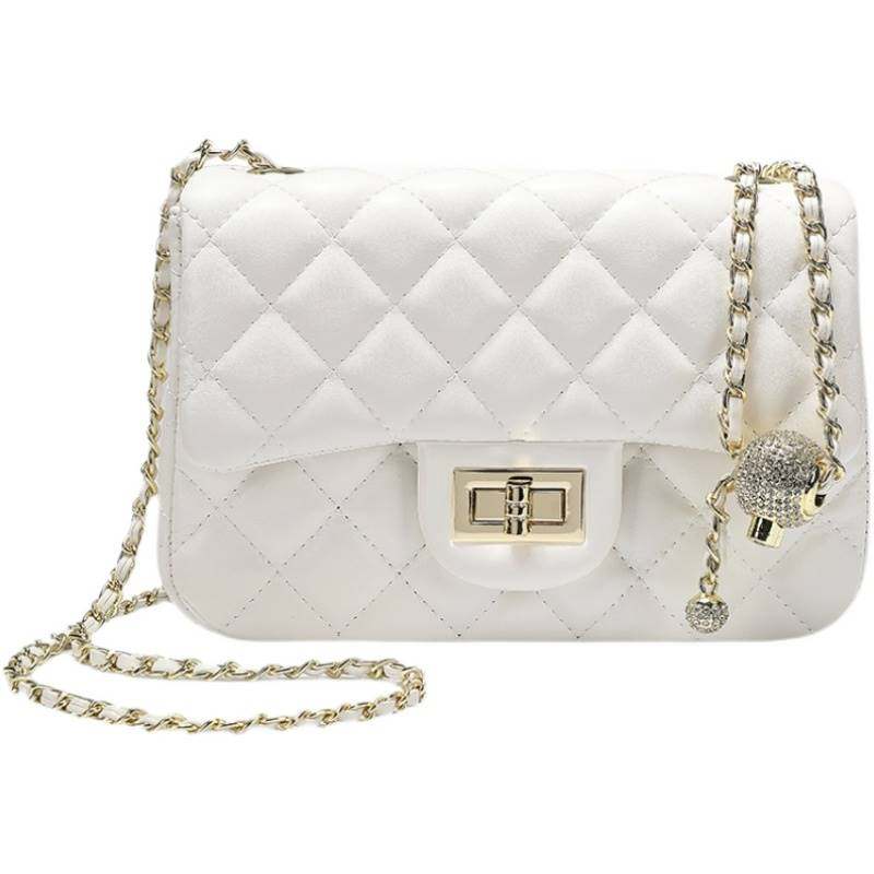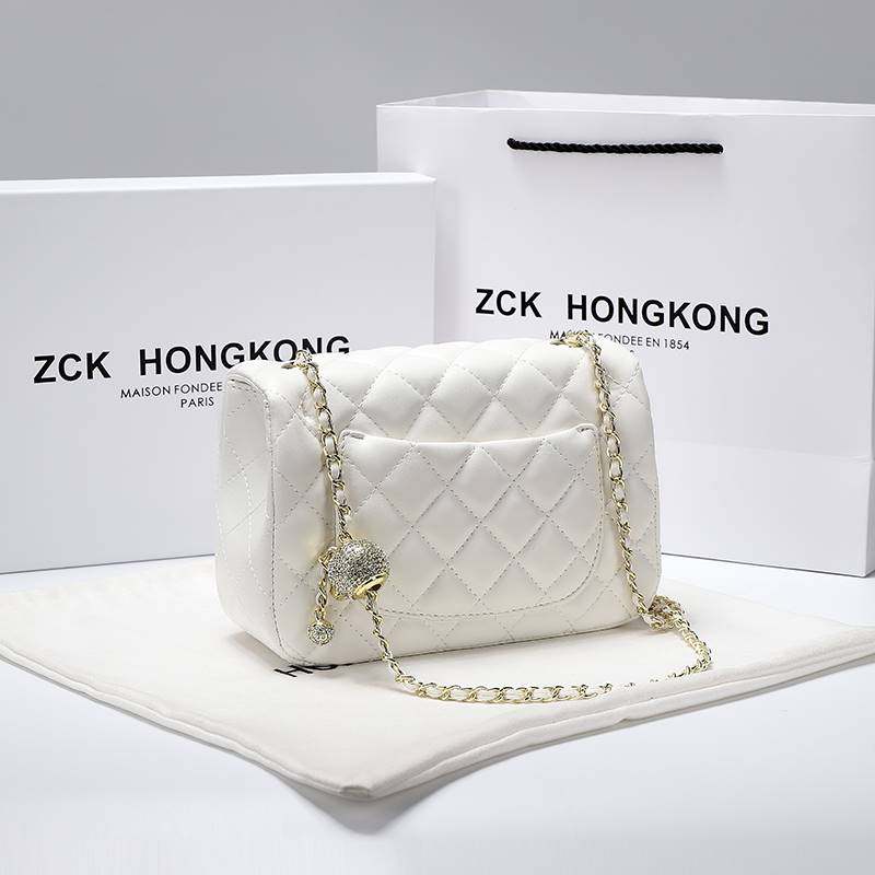 Hong Kong genuine leather girl bag 2022 new small scented wind rhombus chain bag big plate single shoulder inclined satchel bag gold ball bag