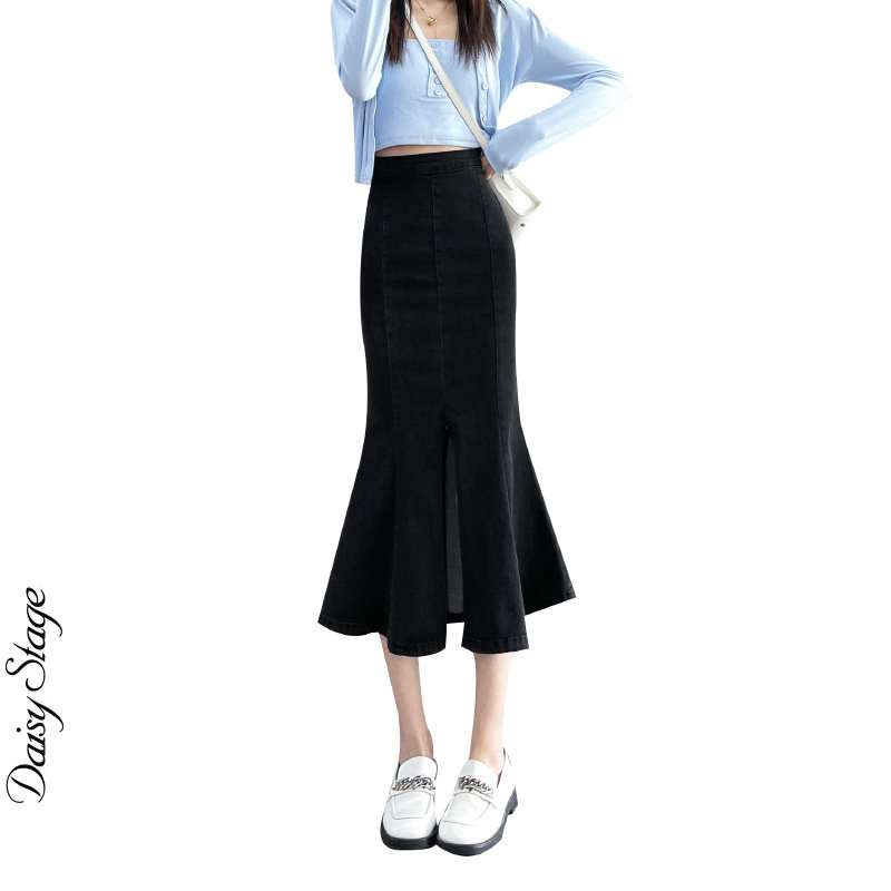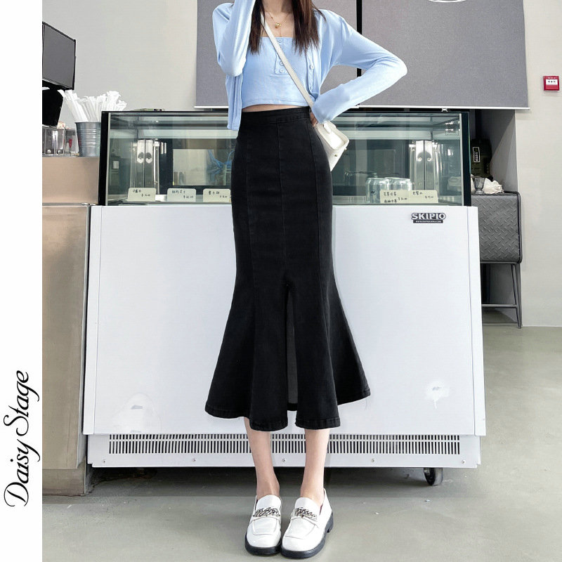 Japanese 2022 high-waisted denim skirt women's slim design small hot girl lotus leaf bag hip blue fishtail skirt