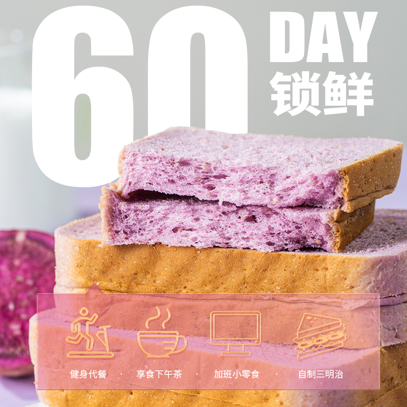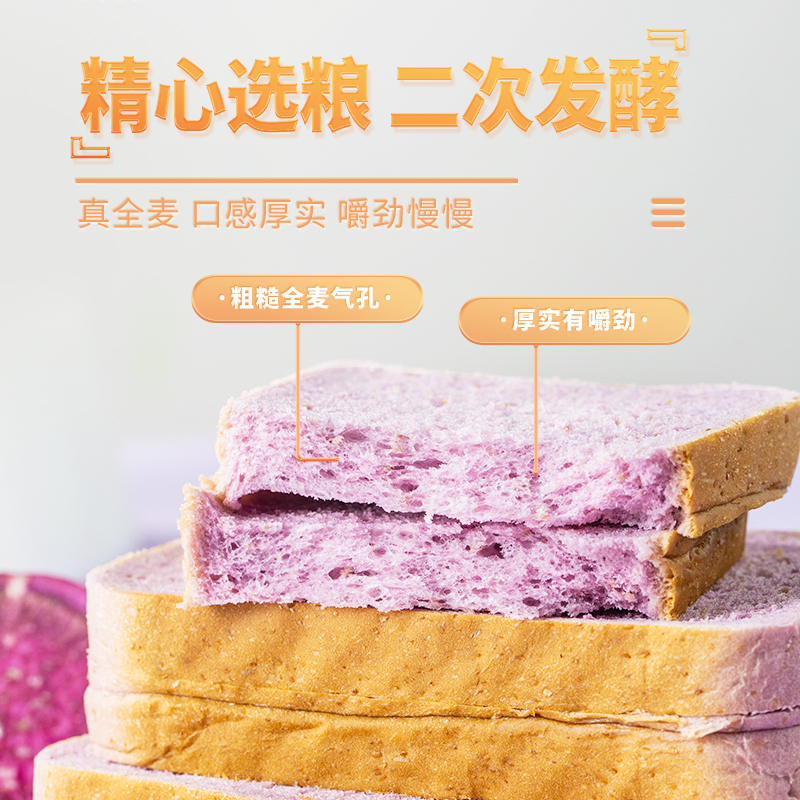 Low-fat purple potato whole-wheat bread toast full box coarse grain meal replacement high satiety food reduced fat breakfast no saccharin