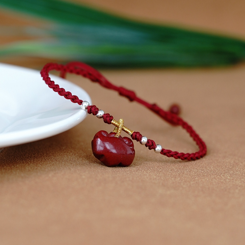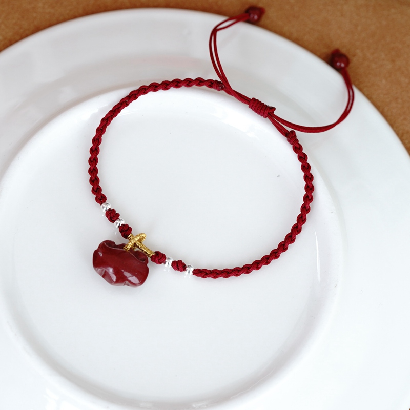 Natural Sand Foot Rope Woman 2022 new foot chain Female tide not to fall out of color Ping An buckle red rope braided famous ethnic wind silver lock