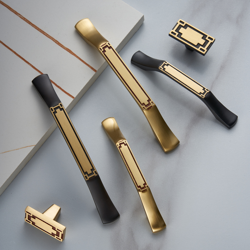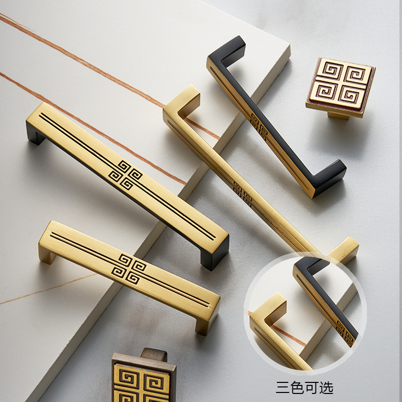 New Chinese Pure Copper Wardrobe Pull Handle All Copper Solid High-end Bookcase Cabinet Drawers Cupboard Chinese Brass Doorknob-Taobao