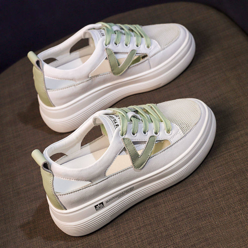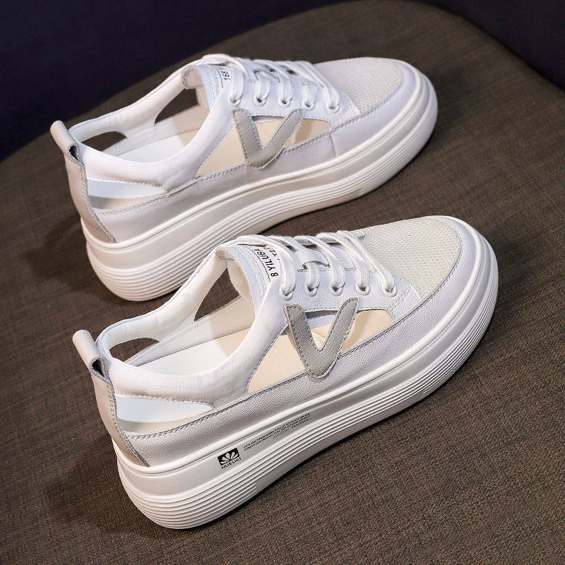 Back in force 2022 New summer season heightening small white shoes female breathable thick bottom hollowed-out mesh surface 100 hitch for leisure