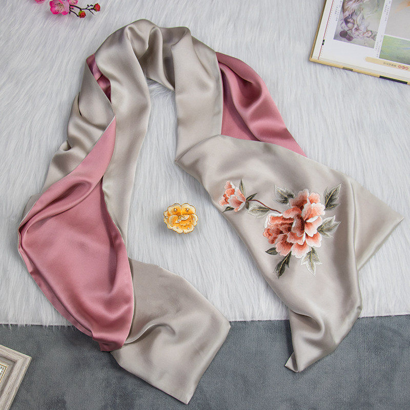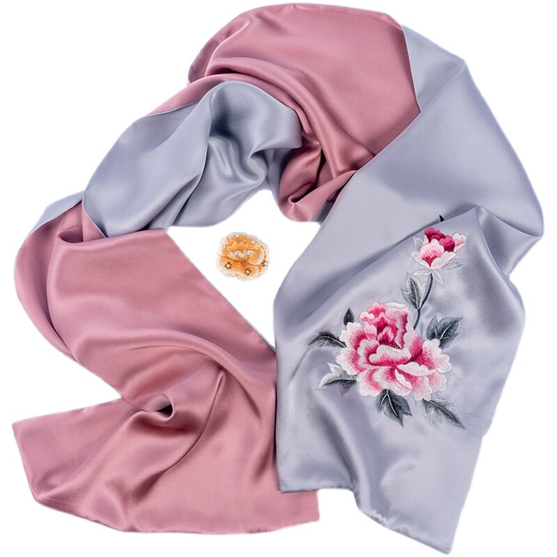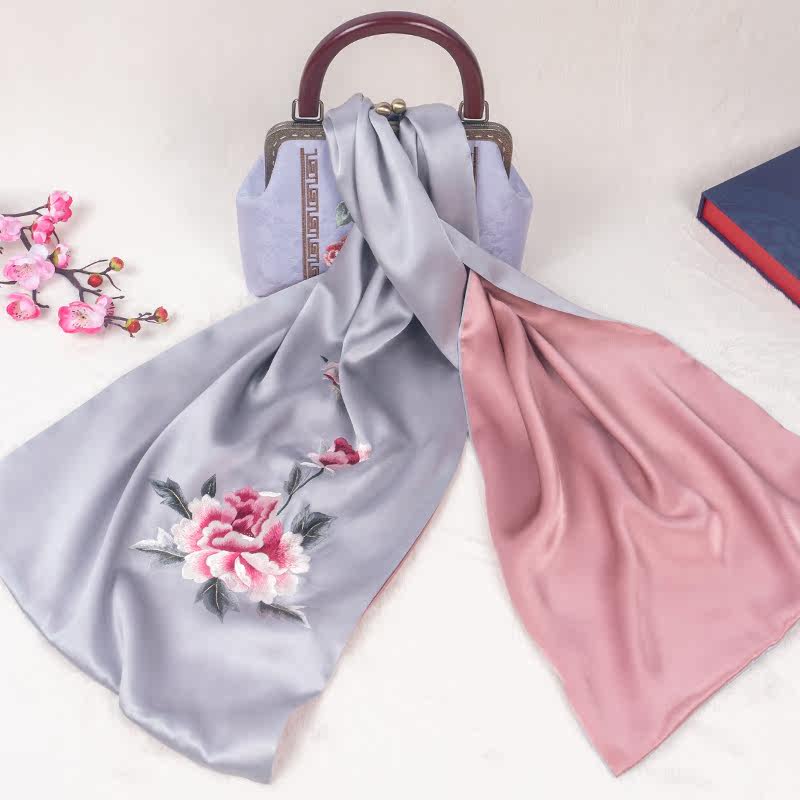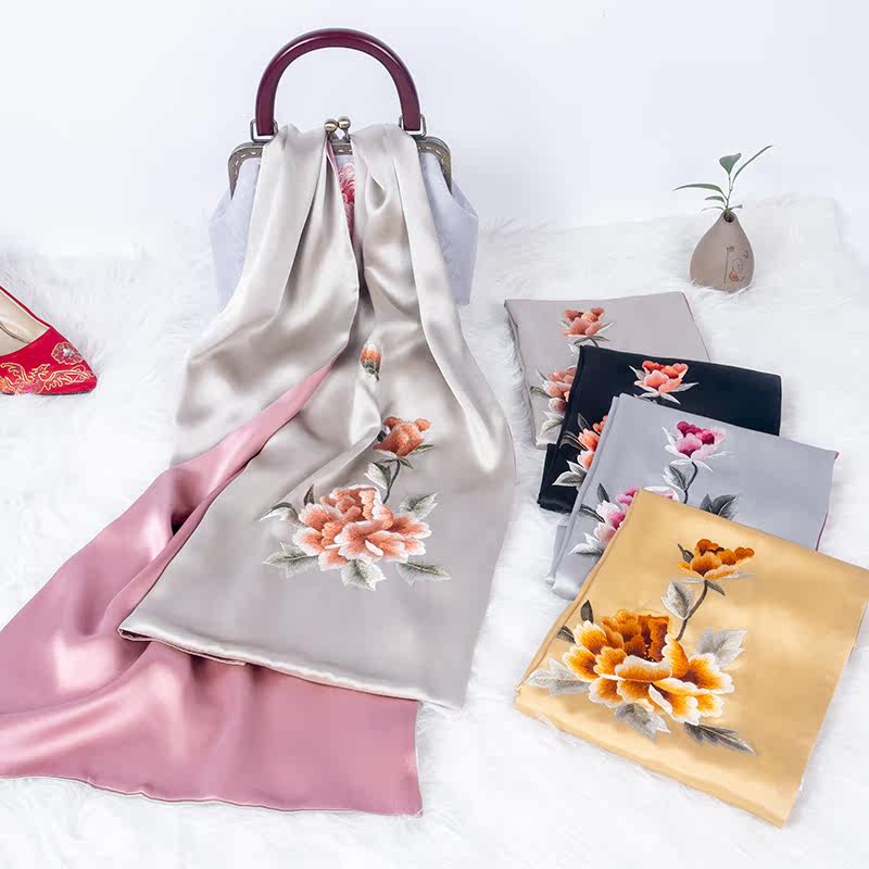 Embroidery Silk Scarf Scarf Shawl Shawl Shawl Mother Mother Spring and Autumn Smo Silk Hand Embroidery Peony Gift