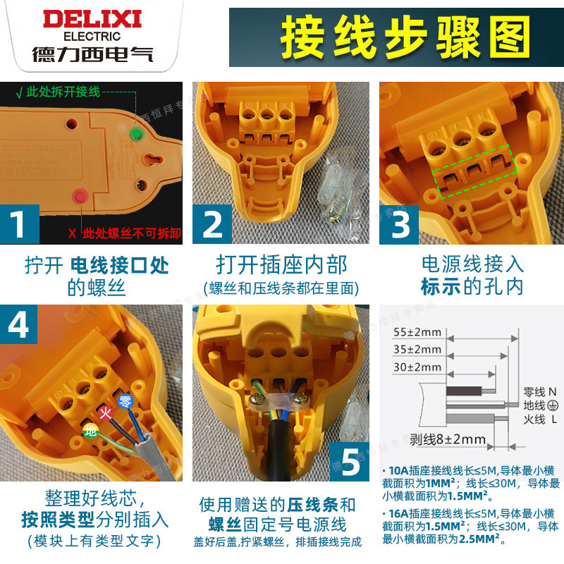 Triple jack 10A (without wire without plug) One three-hole 16A One with five holes 10A Two holes one second hole 10A Two holes Two holes 10 Two holes 10