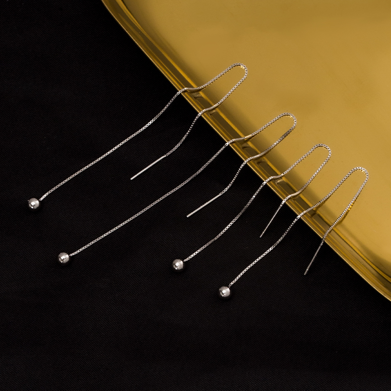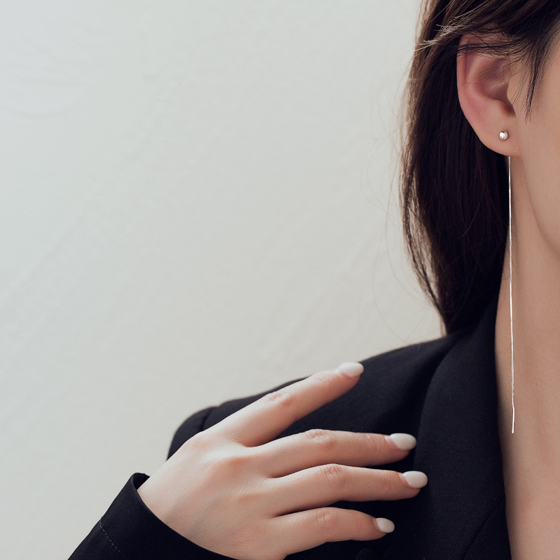 Round Pearl Ear Necklace 2022 new Temperamental earrings Ears Bracelet Women's Pure Silver Long Version Earrings Round Face slim
