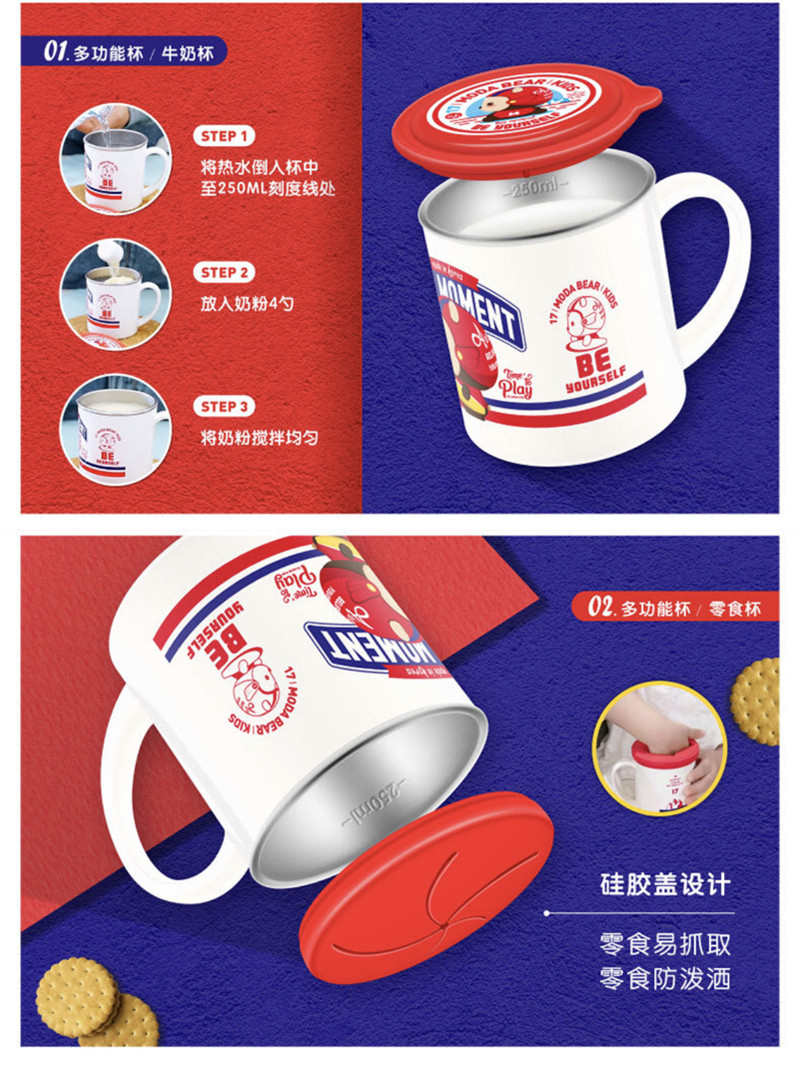 TISOU moda bear stainless steel separable double cover multifunction cup Drink cup Zero Food Cup