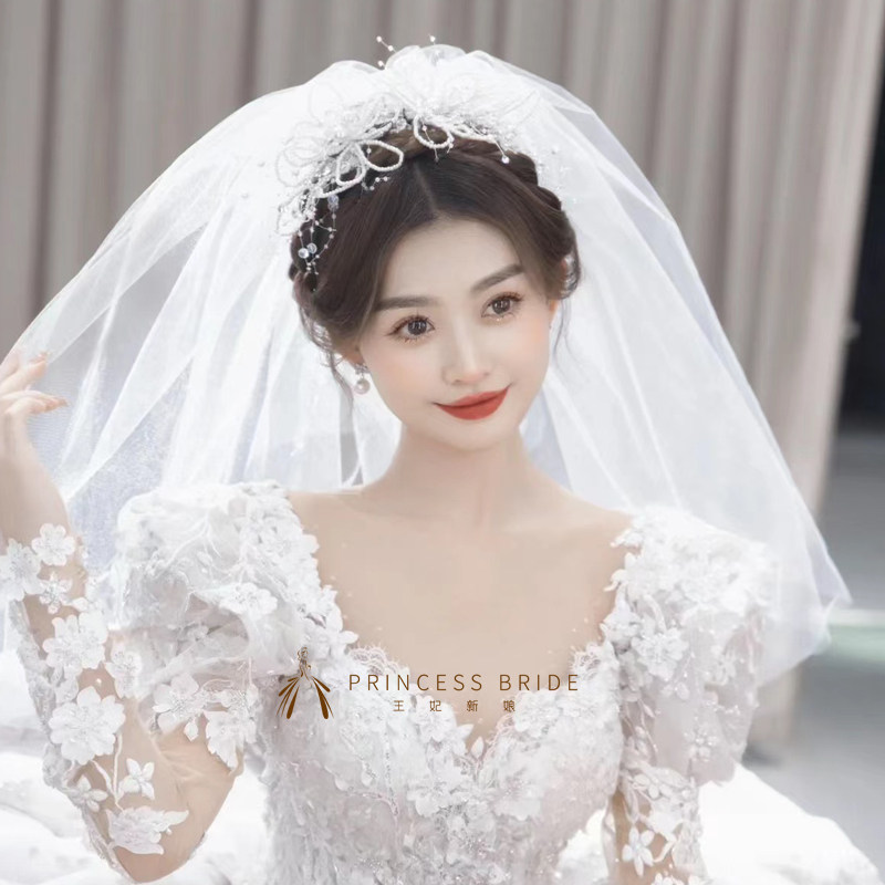 Bride wedding head decorated with white beads Flowers Superfairy meritocratic handmade Korean temperament Lateral Minimalist Hair Accessories