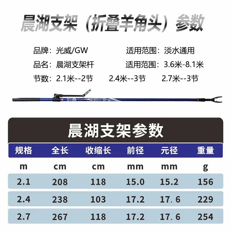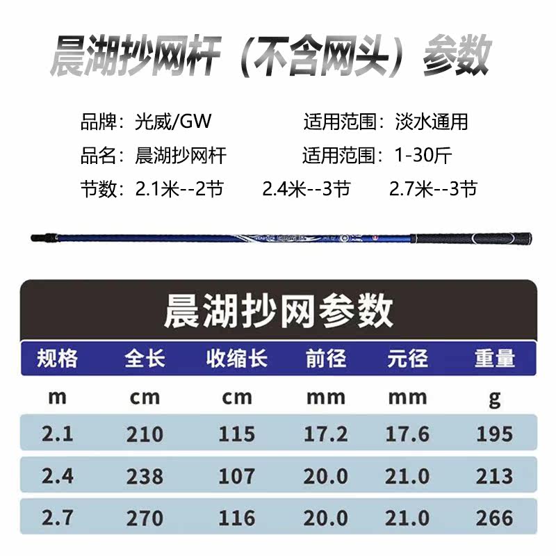 (Dipping net pole) 2 1 meters (two sections in total) (Dipping net pole) 2 4 meters (three sections in total) (Dipping net pole) 2 7 meters (three sections in total) (fishing rod support) 2 1 meters (two sections in total) (fishing rod