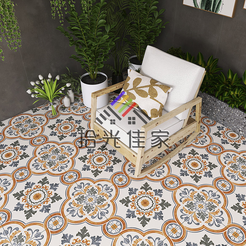 Old Shanghai retro small flower brick yellow dining room homestay parquet carpet tile non-slip floor tile balcony wall tile 300