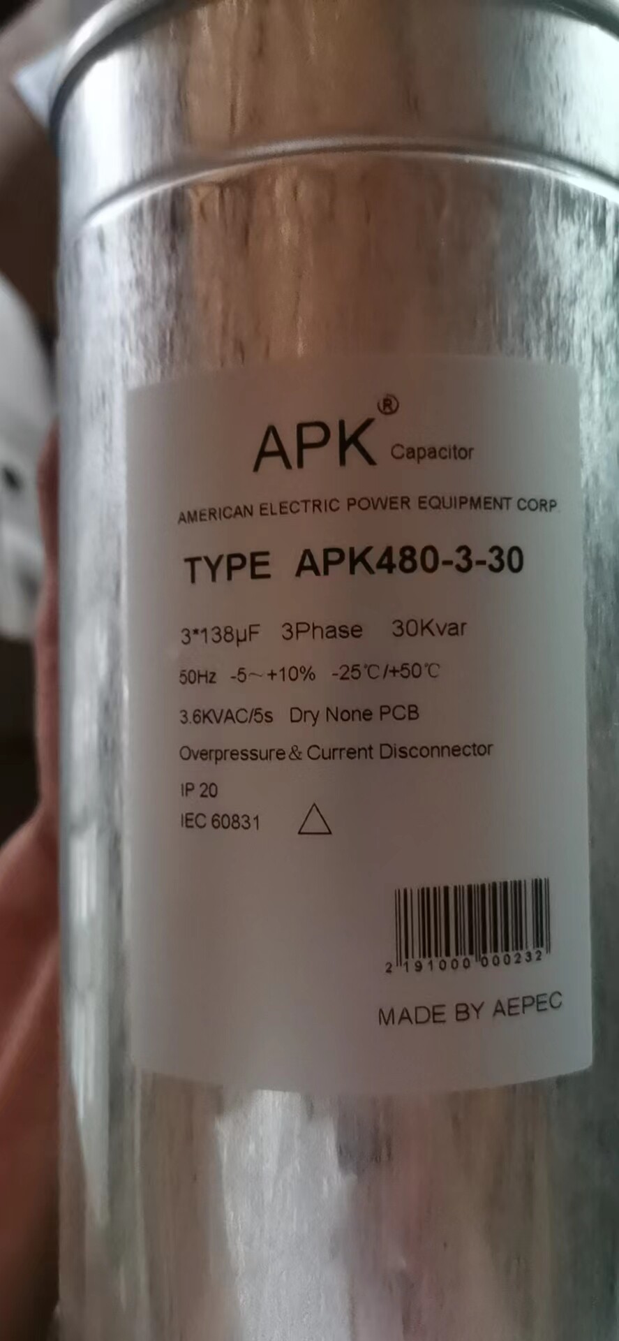 Shengye self-healing parallel capacitor sedan electric reactive power compensator 450-20-3 round