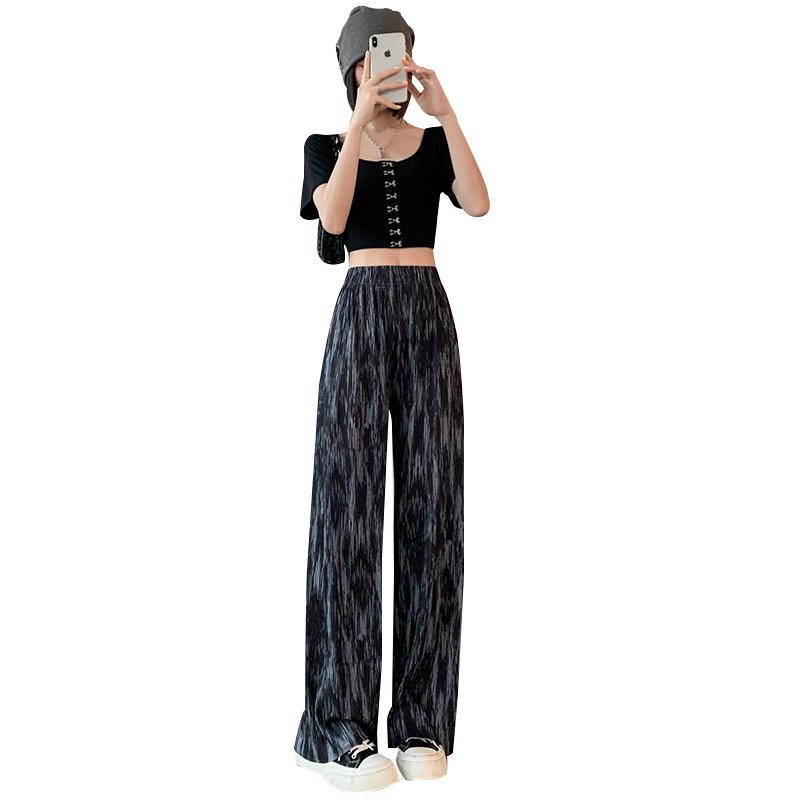 Ice silk tie-dye wide-leg pants women's high waist drape summer thin loose straight casual chiffon student mopping pants