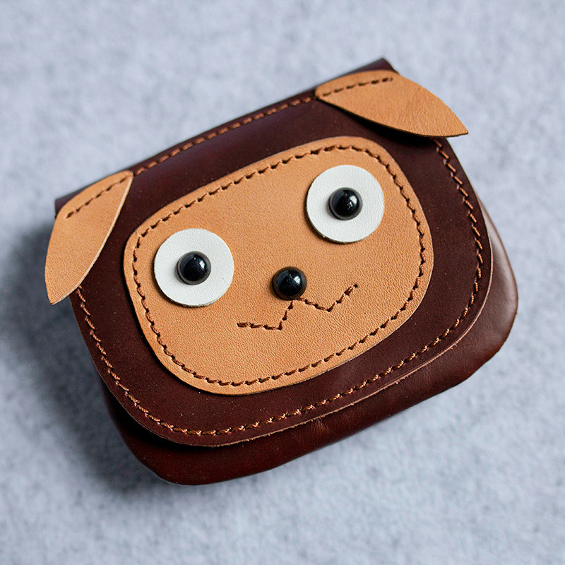 Handmade Head Layer Cow Leather Cute Cartoon Short Money Small Zero Money Bag Genuine Leather Multifunction Couple Card Document Small Bag