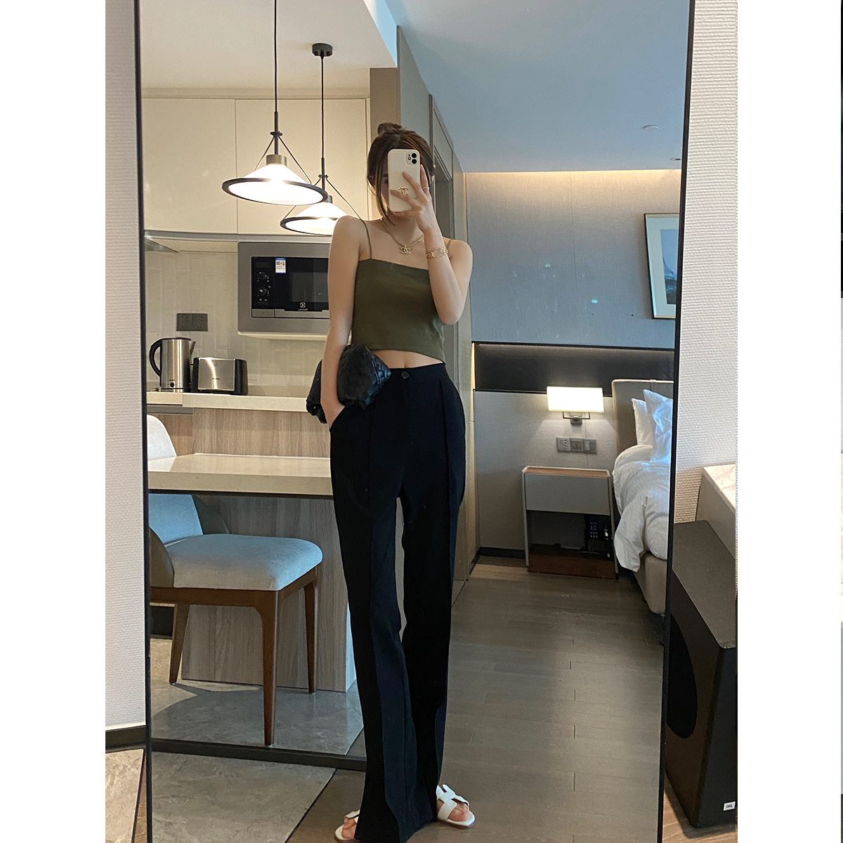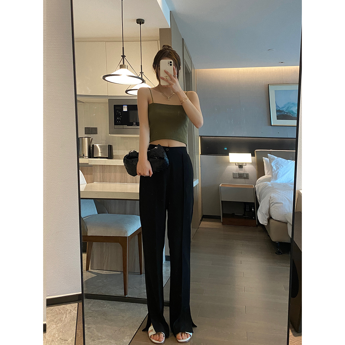 YH77 Open Fork Horn Pants Woman Summer Pituitary Straight Drum Suit Tug Pants Loose Casual Conspicoty Wide Leg Pants