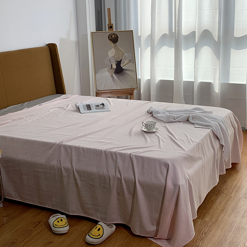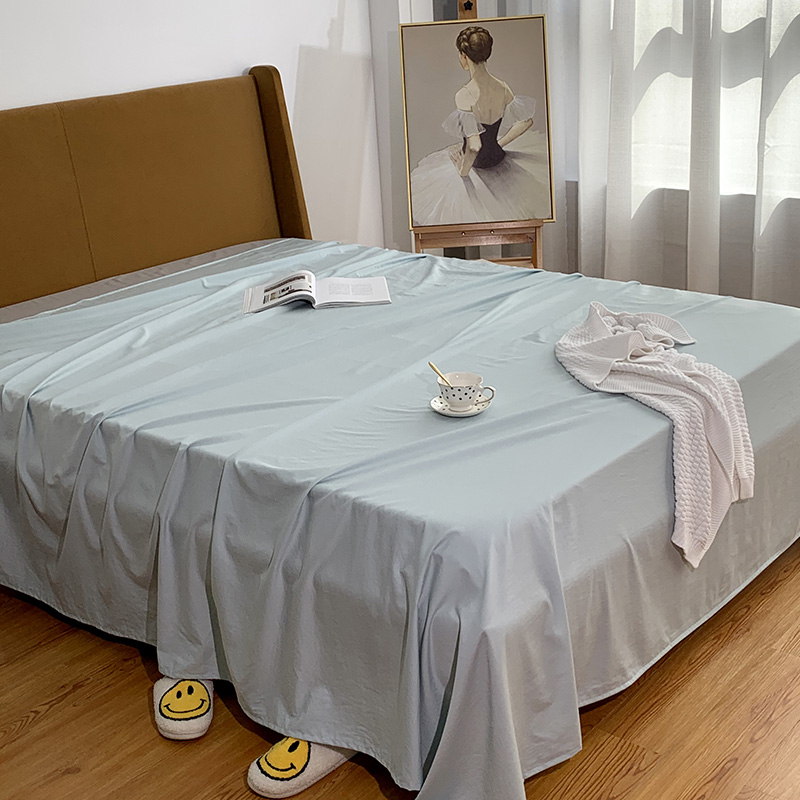 Spring and summer minimalist solid-color combed cotton single-piece bed sheet cool feeling ins wind pillowcase three-piece double 1 8m mattress all-inclusive