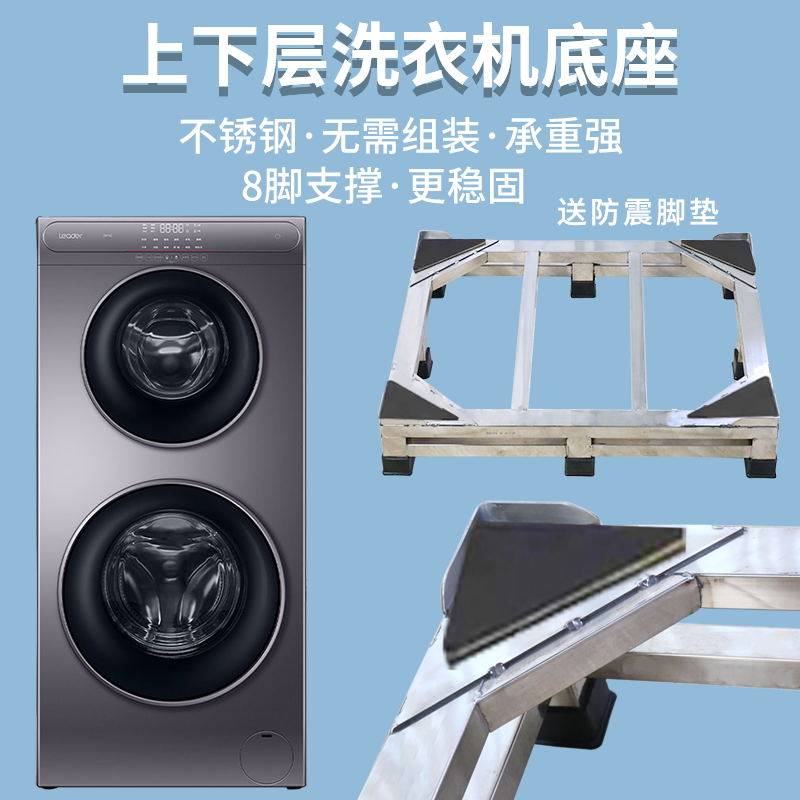 304 free installation of stainless steel washing machine superimposed dryer base upper and lower layer double-mother roller washing and drying rack