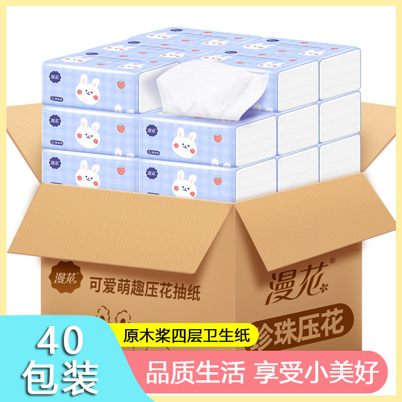 Diffuse toilet paper whole box tissue cartoon cute raw wood pulp household paper four-layer napkin facial tissue affordable pack