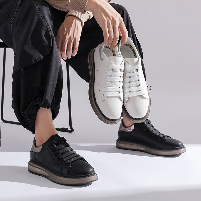 Men's shoes summer 2023 new shoes leather tide breathable and thick soles high plate inknut insane cushion small white shoes