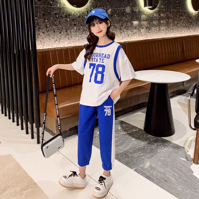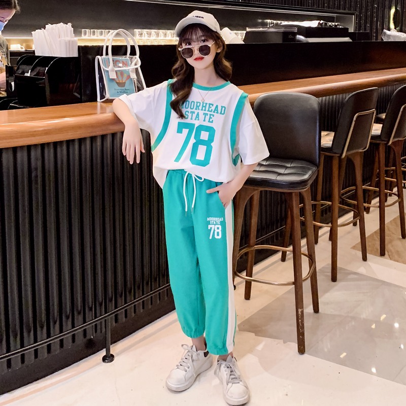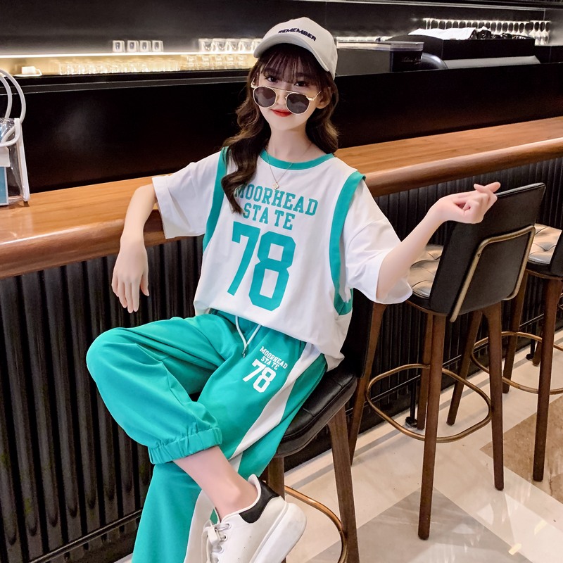 Girl Summer Dress Trendy Children Suit Short Sleeve Big Boy Nets Red 2022 New Foreign Pie Girl Clothes Summer Two Sets