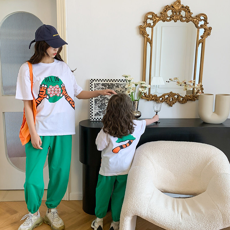 Pro-Child Clothing Girl's Summer Suit Pure Cotton New Korean Version Loose High-end Trendy Internet Red Foreign Pie Summer Dress Mother Women Dress