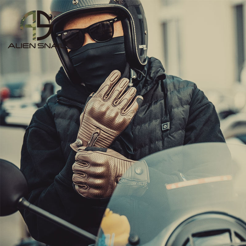 Alien snail V8 motorcycle gloves retro sheep skin touch screen cycling gloves for men anti - wrestling knight equipped with four seasons