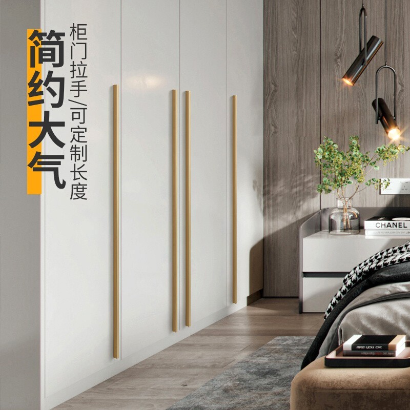 Custom long version light luxury full body wardrobe door handle modern minimalist gold overall cabinet shoe cabinet drawer black handle