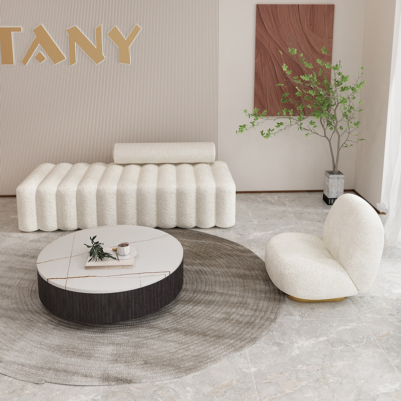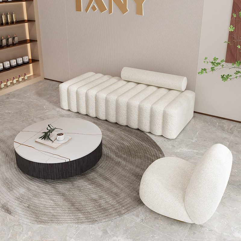 Nordic minimalist lamb velvet sofa long strip multi-person small apartment white straight row beauty salon reception sofa net red