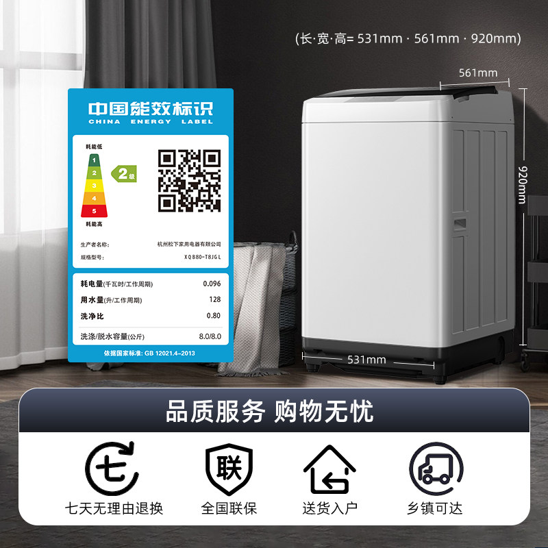 Panasonic small 8 kg household fully automatic washing machine large capacity elution wave wheel official flagship store T8JGL