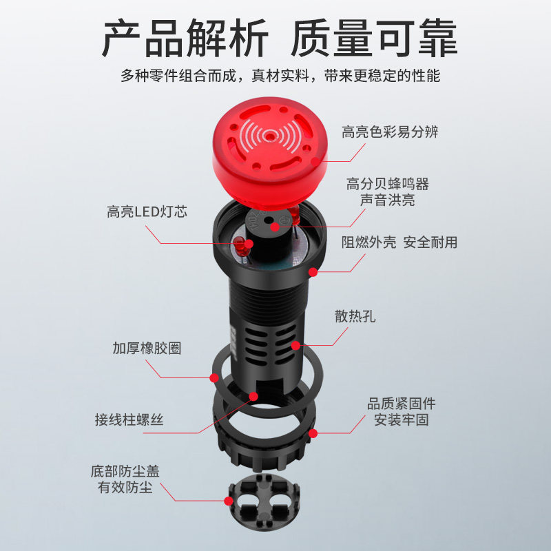 AD16-22SM buzzer interrupter LED light flash light and AC/DC siren 12 24220 V