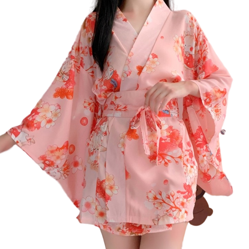 Japanese GP Sexy Crushed Flowers And Pure Desire Wind Sleeping Dress Women's Summer Thin Ice Silk Bathrobe V Collar Short Sleeve Home Dress