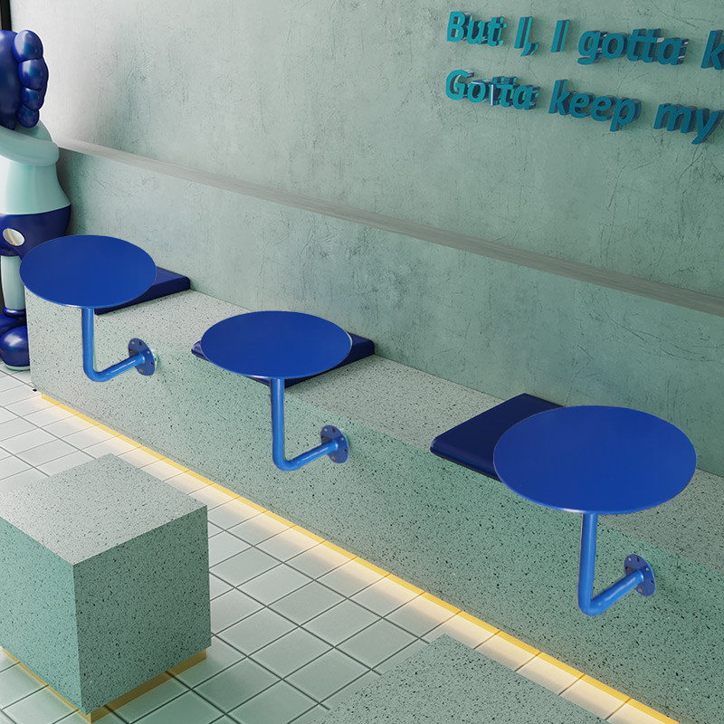 Heytea with wall-mounted table milk tea shop cafe against the wall card seat small round table creative minimalist Klein blue