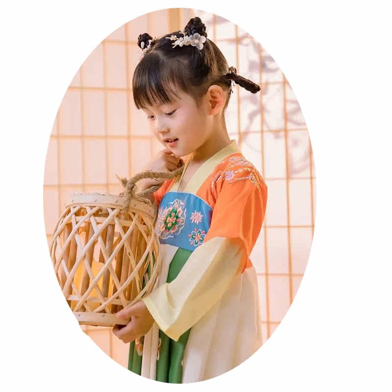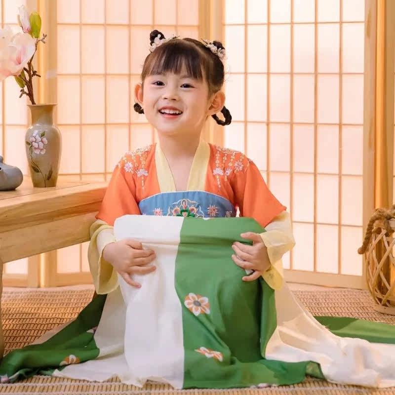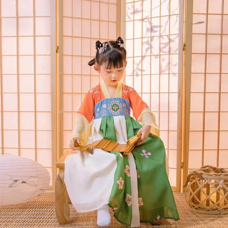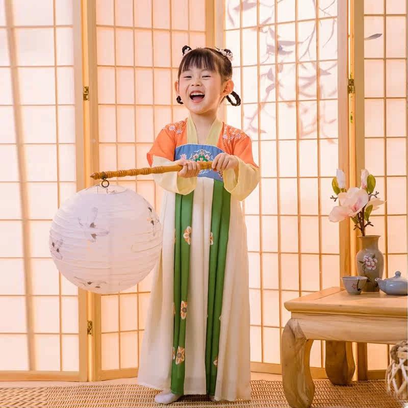 Girl Han dress summer thin girl girl old fashion fairy skirt Chinese wind childhood spring and autumn print dress