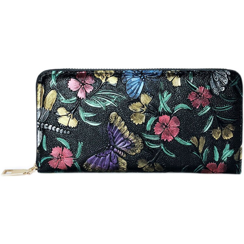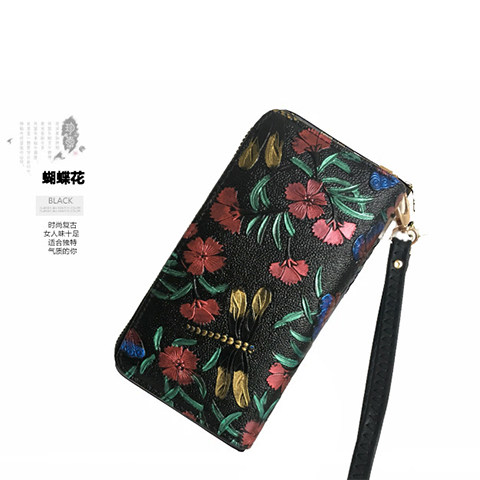 (special price) wallet female European and American long style zipper retro embossed hand bag large capacity female handbag mobile phone bag