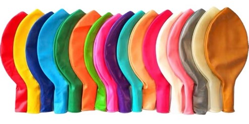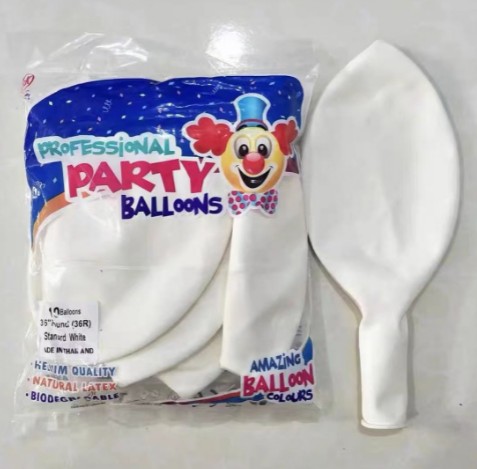 36-inch white balls, 10 pieces, 36-inch silver balls, 10 pieces, 36-inch black balls, 10 pieces, 36-inch red balls, 10 pieces, 36-inch orange balls, 10 pieces