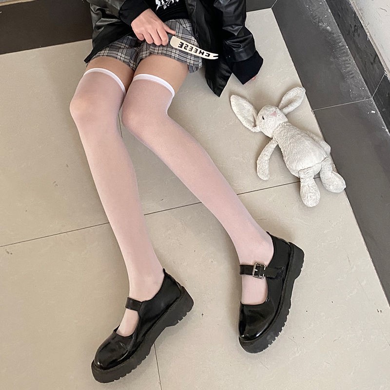 Black Silk Stockings Ultra Slim FULL TRANSPARENT OVER KNEECAP STOCKINGS LONG CYLINDER BLACK INS TIDE SEXY WHITE DAY ENSEMBLE CUTE JK