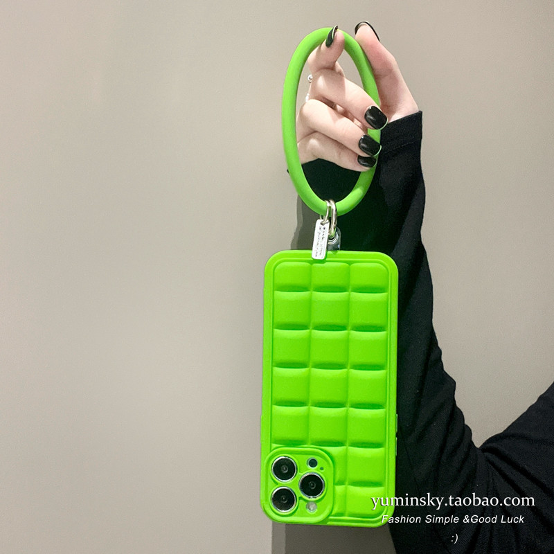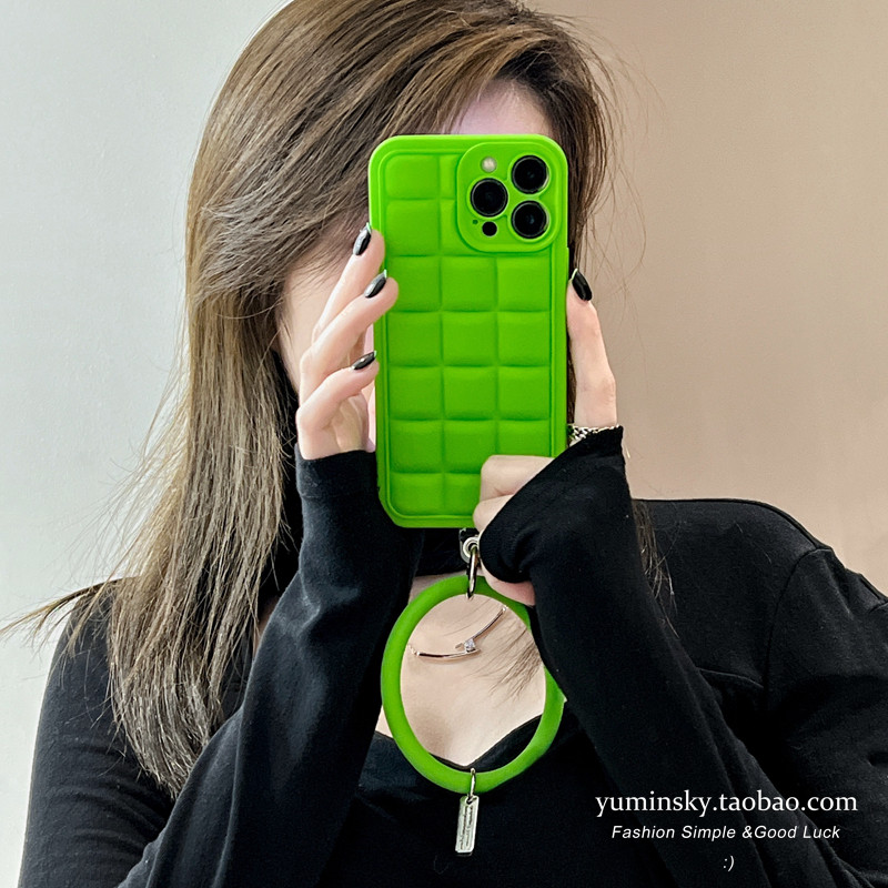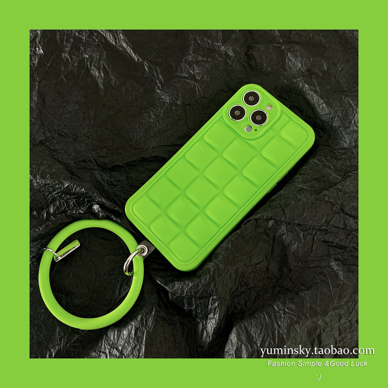 Fluorescent green square hanging ring applicable iPhone13promax apple 12 mobile phone protection shell 11 personality xs soft xr female 8p