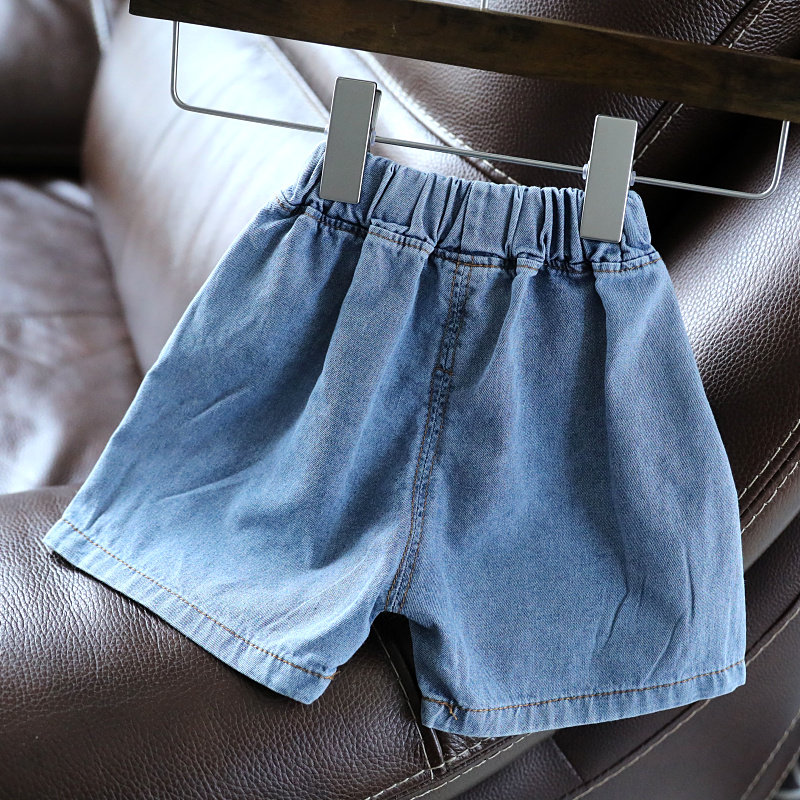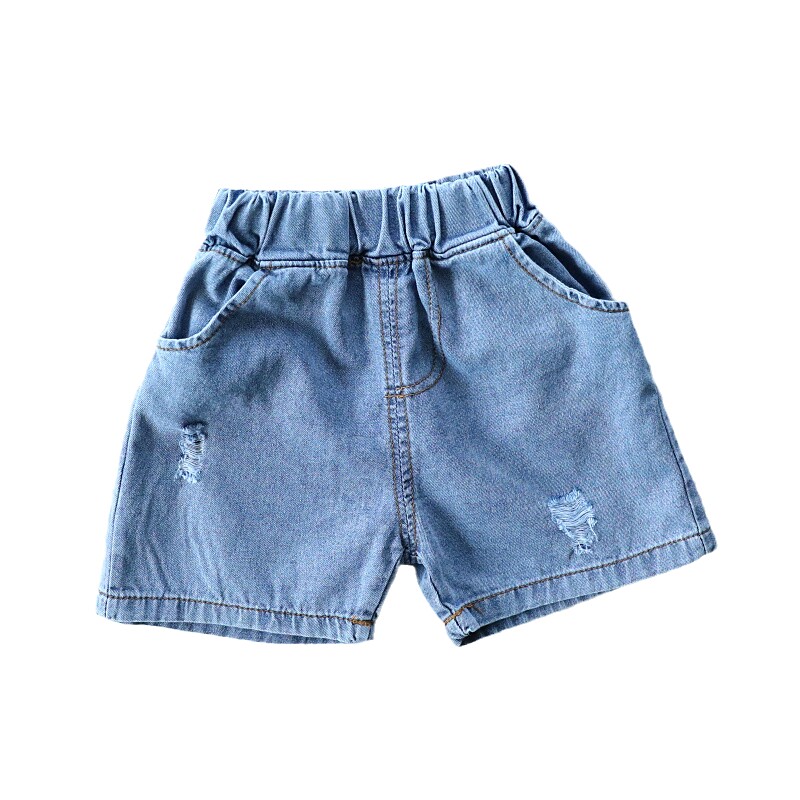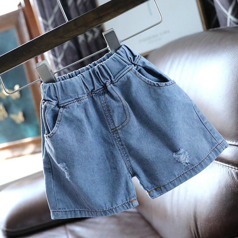 Baby hole denim shorts Korean version children's summer pants five-point pants children's new summer pants 1645