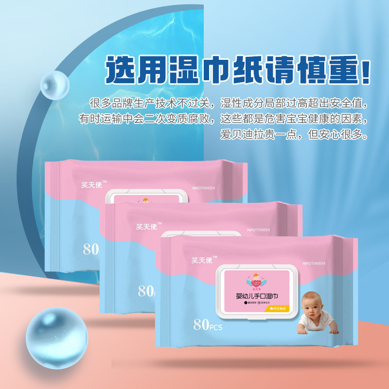 Baby wet wipes for hands, mouth and farts for babies, infants, newborn families, affordable large packages, special price 80 pumping 4 packages