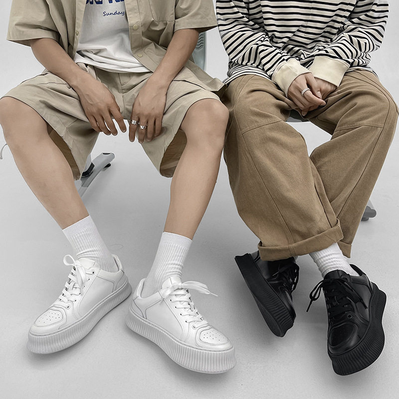 Hong Kong supreme tide brand leather small white shoes men's shoes new breathable heightening board shoes simple casual couple shoes