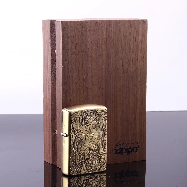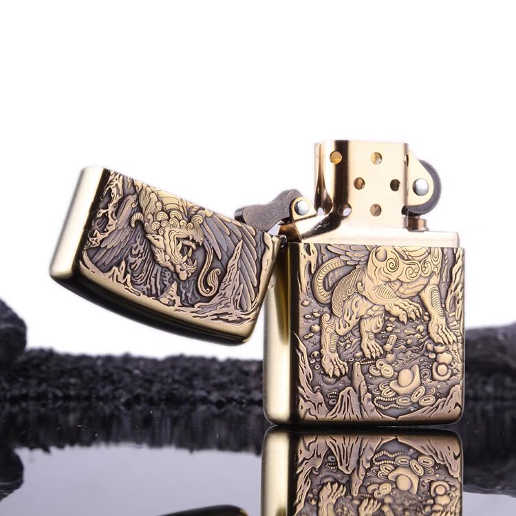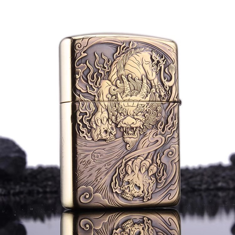 zippo lighter wire drawing pure bronze armor heathen leopard king