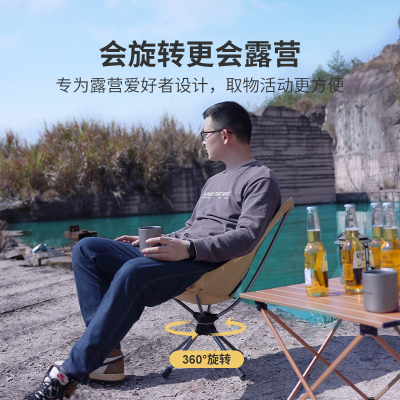 Sunnyfeel Mountain Title Outdoor Folding Chair Subsuper Light Portable Swivel Moon Chair Blackened Camping Chair Wild Dining Chair-Taobao