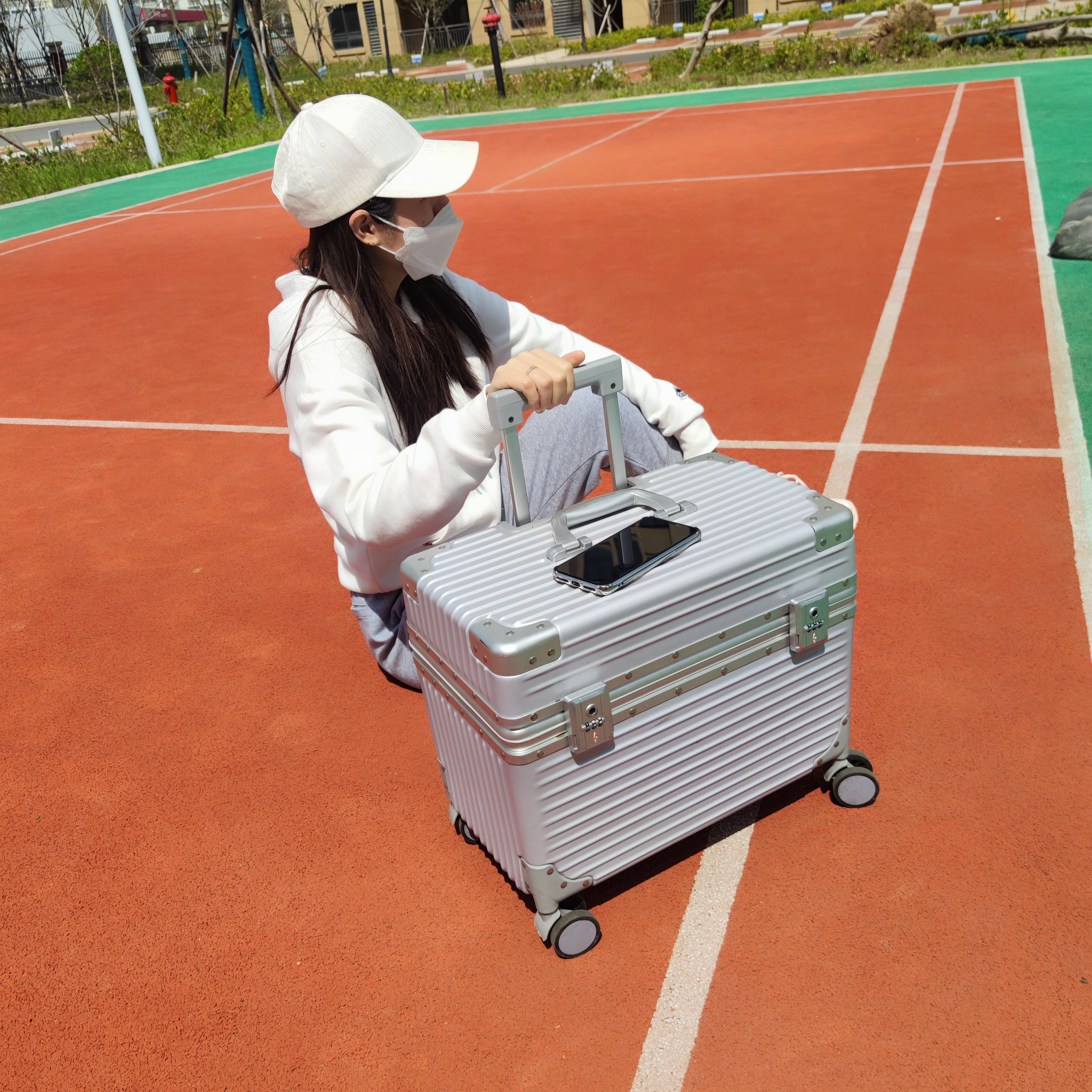 Photography Lalever Box Men 16 Makeup Box Woman 20 inch Boarding Suitcase Aluminum Frame Upper Clamshell Small machine Long leather case 18