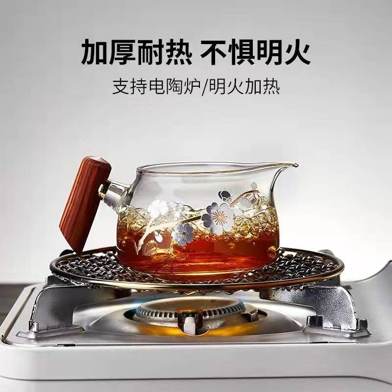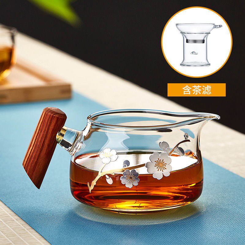 Internet celebrity justice cup exquisite wooden handle glass thickened tea leak integrated Japanese-style tea sea filter tea divider tea set filter tea