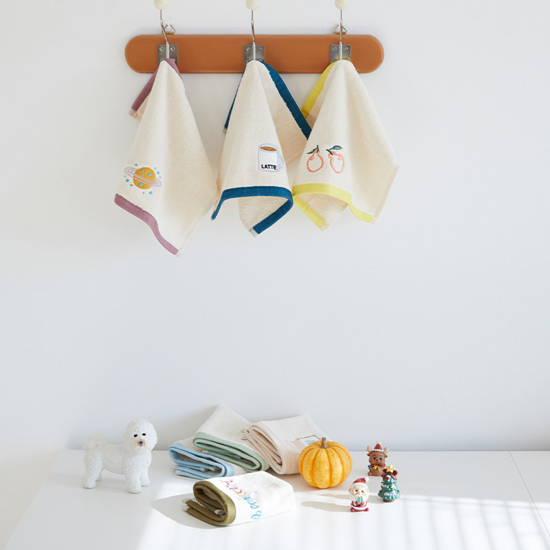 Class A raw cotton crochet embroidery small fresh children's cotton household towel absorbent wash face square towel bath towel