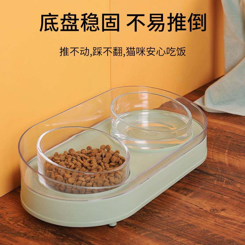 Cat bowl glass cat food bowl double bowl dog bowl pet bowl cat food bowl water bowl cat supplies protection cervical vertebra to prevent overturning