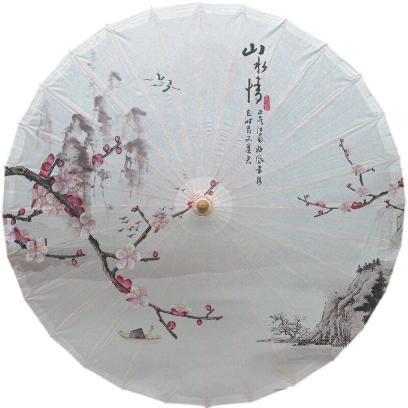 New Retro Wind Tung Tung Oil Paper Umbrella Bamboo Manual Long Handle Umbrella Hanfu Photography Stage COS Props Landscape Scenery