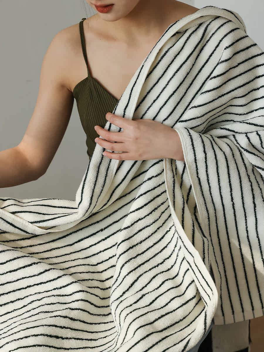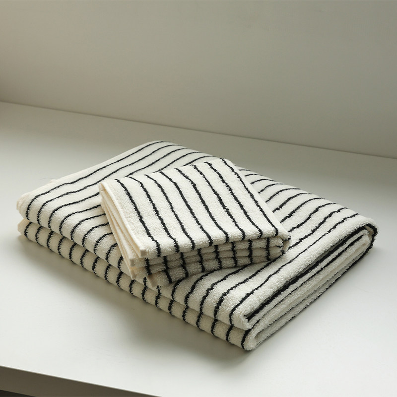 Class A antibacterial black and white fine strips towel pure cotton wash face towels All cotton Home men and women bath towels soft and absorbent