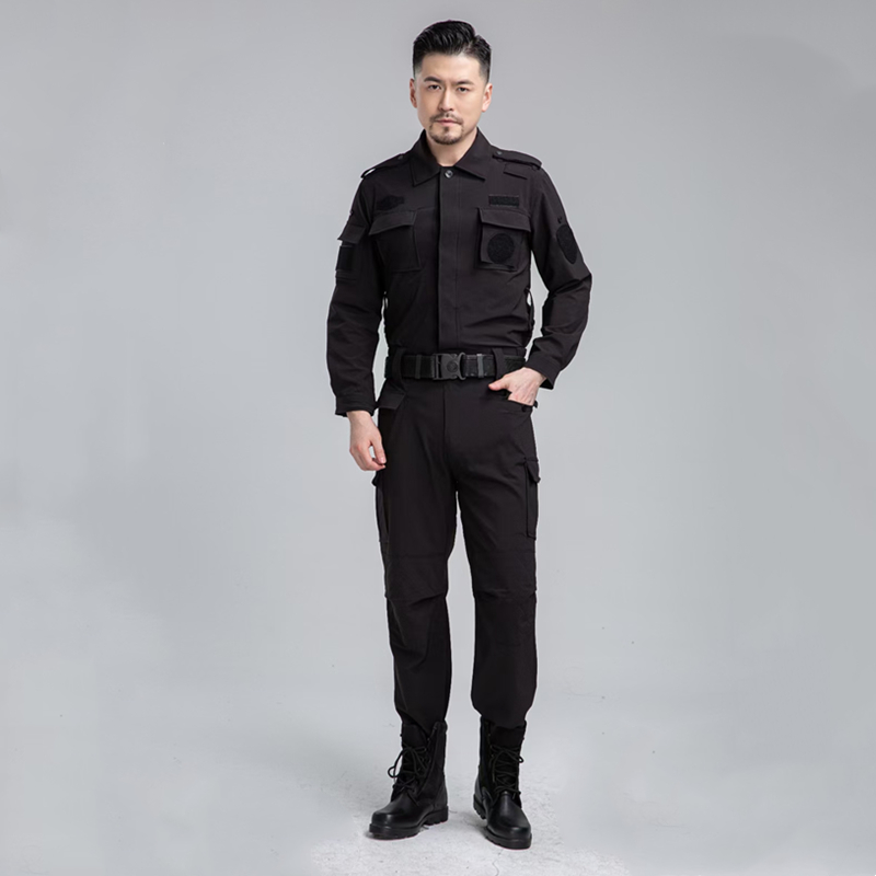 Black short-sleeved quick-drying training suits for men and women security summer elastic long-sleeved training suits instructor suits duty suits